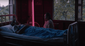 An interesting choice in Weerasethakul’s filming of Cemetery of Splendor is the lack of reverse shots used in conversation. Characters have their backs to the camera as they talk and Weerasethakul scarcely chooses to show character’s faces in close-up. When he does, we rush to decipher the character’s expression, attempting to find insight into their thoughts.