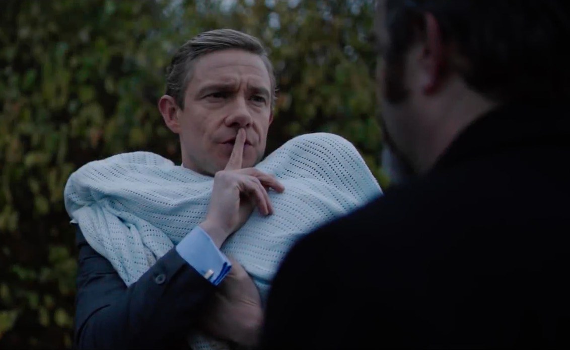 Goodman, unimpressed yet slightly perplexed by both tales, still believes there to be rational explanations for everything seen so far, though the presence of strange goings on amidst his journey across the country pushes him forward. The third case brings in Martin Freeman’s Mike Priddle, a financier in the city who tells the story of a poltergeist within his home whilst looking after his (implied) inhuman child. This implication is really the only hint of comedy throughout the rest of the film. As Ghost Stories builds towards the final act a clear sense of dread takes over. Freeman’s poltergeist shenanigans are the only real examples of visual effects too, and it’s sad that they stand out among the rest of the practical work. Priddle is probably the least-developed of the three victims, though Freeman is still able to stand out within the cast thanks to some brilliant material later on. It’s clear throughout the final tale that something else is lingering, and some other well-executed jumps (one in particular, from the leftist of fields) have Goodman question the wild goose chase Charles Cameron had him go on in the first place.