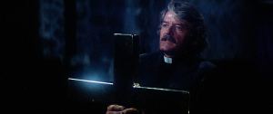 The same level of fun applies to the plot and characters, with Carpenter nimbly introducing the full cast in the first act before dropping them in their positions for the return of the fog As things go haywire and eventually reach a feverish pitch, The Fog can become quite campy- and really, how could a film in which ghost sailors hidden by glowing fog sneak up and kill people with their hook hands not be campy?- but it always feels like the right balance of fun and creepy. It feels like a film that one could have found on television in their youth and then have nightmares about for years. The film’s characters may not be incredibly well-realized, but that is hardly an issue as the cast is able to make due with what little is there, capturing the very human core of these characters. This is especially true of Stevie Wayne (Adrienne Barbeau), a Hawksian woman and owner of the KAB radio station. Her sexually suggestive lines as she tries to entice in male viewers to listen to her late night radio show (the male listeners’ responses as they drive around are also quite funny) and her take-no-prisoners attitude as the chaos unfolds makes her such a fun character to watch. Father Malone (Hal Holbrook) is similarly gripping, as he is the one who learns the truth behind the town’s history must face-off with the sailors to come to some kind of agreement. The film’s climax is as bonkers as one could hope thanks to Father Malone with some great religious imagery and guilt playing out as he is forced to reckon with the sins of his ancestor.