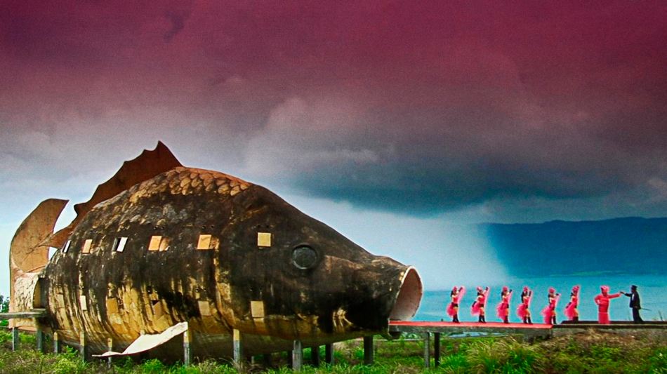 Breathtaking scenes like the one above are certainly among the most astounding of the past decade, but just as memorable are the surreal moments celebrating barbarity that exist everywhere in Oppenheimer’s depiction of modern Indonesia. A horrifying scene about halfway through the film shows Anwar’s appearance on a talk show, whose host amicably talks about mass extermination like an American late night host might discuss the latest Taylor Swift album. Behind the camera, one of the sound operators casually wonders aloud, “how many people has he killed?”, to which her partner replies, “around a thousand, I think”. The brief exchange hits as hard as anything else in the film, not because the two sound operators necessarily believe in the glory of Anwar’s crimes, but because of their total indifference to them.