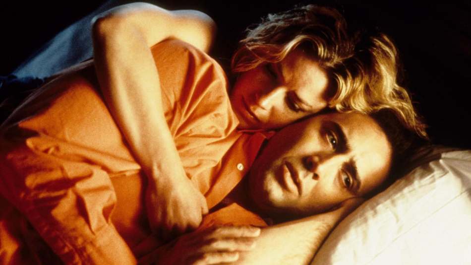 Leaving Las Vegas opens on alcoholic LA screenwriter Ben (Nicolas Cage) dancing through a liquor store with a shopping cart full of booze. It’s clear that he is nearing the end of his days as a functioning alcoholic – his brother is cutting him off, his boss is firing him, and even his regular bartender is getting tired of serving him a gin and tonic every morning. With his severance pay, Ben drives off into the desert for Las Vegas to drink himself to death, which he approximates will take “about three to four weeks”. After almost drunkenly hitting prostitute Sera (Elisabeth Shue) with his car, he enlists her services for $500, only to realize that what he really wants isn’t sex but a simple conversation. The two forge an unlikely bond as “the drunk and the hooker”, never sleeping together but enjoying each other’s company as the former carries out his extended suicide plan.