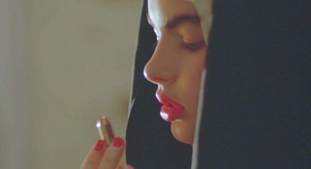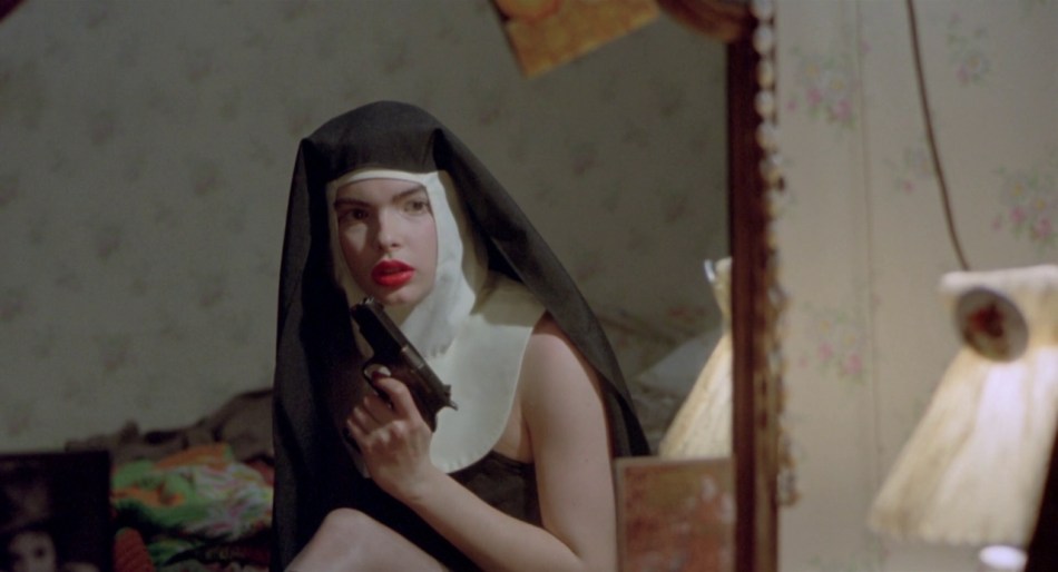 It bears mentioning that Ferrara’s decision to portray the unfathomable misfortune of being raped twice in quick succession does not aestheticise or trivialise rape, nor merely adheres to the serialisation of rape as seen in the genre. It is this extreme of brutality, especially in its variance, that unmoors for Thana enough power and mania to vindicate her exploited body with such thrilling vivacity; wandering the New York streets in a nun’s costume, with her lips blood-red in an embrace with her exaggerated, subversive femininity, shooting any man within offensive proximity.