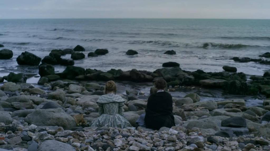 Disappointingly, Ammonite is guilty of voyeuristic representation, as seen in precursive lesbian dramas such as Blue Is The Warmest Color, known for its controversial male production. Charlotte, who is Mary’s junior, represents a severely outdated model of the young girl experimenting with her sexuality, or, worse yet, her lesbianism is exhibited as reactionary, a defiant strategy against her unfulfilling heterosexual marriage. When homosexuality is bound so stringently to contextual factors, that which desperately point towards explanations for the potentiality of lesbianism, it annihilates any sense of genuine representation. As a result, Charlotte’s character, though fronted by Academy favourite Saoirse Ronan, falls rather flat; her intentions and humanity waver rather bleakly amongst an invariant landscape of vague relations and precarity.