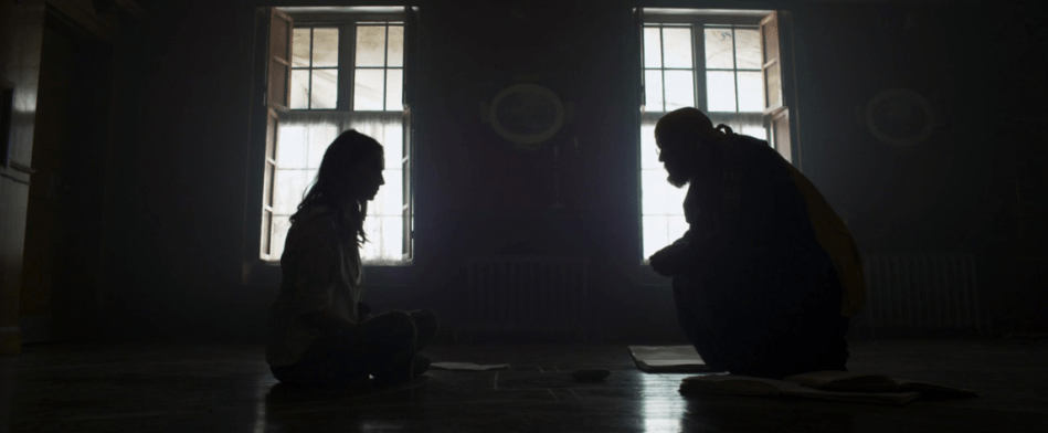 A Dark Song’s approach to the theme of occultism is somewhat unique. Occult practices abound; sealing the manor in a ring of salt, the comprehension of magic circles and squares, and the progression through arduous tests of lack of sleep and food. However these things and their results are not pitched to us as especially wondrous. There are certainly moments of clear otherworldly presence, but A Dark Song isn’t giving us magic as we might know it in other films. The occult structure we are operating within is not framed as being inherently good or bad, it is occult in the most basic definition of the word – obscured, or indeed, dark. Many films, especially those inhabiting mainstream franchises (Paranormal Activity, The Conjuring, Oujia) that feature such rites align them with evil, death, and destruction. Bad things happen in this film, but they occur because of the intentions and mistakes of the people operating the system, not the system itself. In one particularly memorable scene, Sophia and Soloman are discussing the workings of magic, Sophia questioning Soloman’s motivations. He says; “No, the point is to know. – And to see the architecture, and the levers to climb the mountain – knowledge.” It is within this mindset that the ritual grinds on like some endless endurance test.
