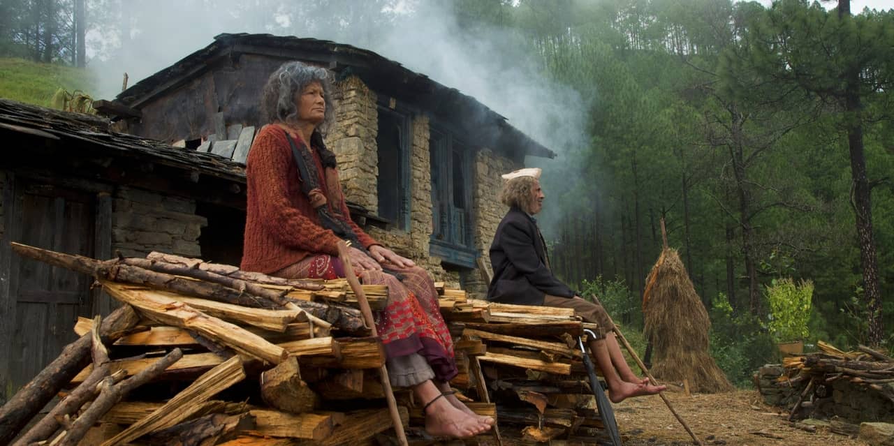 Instead of traditional narrative devices, the existentialist story relies on the universal messages and emotional depth of ancient myths. It centers on elderly Padam (Padam Singh) and his equally withered wife Tulsi (Heera Devi) who spend their whole lives in their remote mountain village. There’s neither electricity nor running water and in the frugal hut the old couple cooks over a fire pit. For food or the doctor, they pay with one of their goats. Time seems to have forgotten this isolated spot. But of course, time never forgets. This is made depressingly clear by the cultural, economical and structural disintegration of their small community.