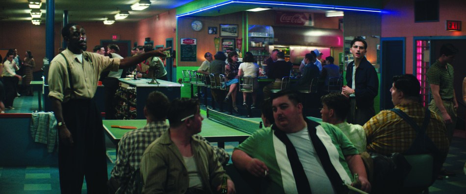 The only path to the American dream for a man like Marty is to shed oneself of all pride and dignity. They must sacrifice themselves at the altar of capitalism, to be held captive by the decision makers with all the money and to play for them whenever they need the amusement. He is, as even he admits, a “performer” of a kind. In his mind, though, he is a showman out to entertain audiences with his skill as the main attraction. He is performing even for himself, though, deluding himself that his dream is within his grasp because of his drive and ambition. Yet, at every stage, he is a helpless young man. He needs money from his uncle to even go to the World Championships. He needs the help of old friend Wally (Tyler Okonma) to hustle some kids at a bowling alley for traveling cash. He needs the help of lover Rachel (Odessa A’zion) to extract reward money from a man who lost his dog. He must beg and plead from his hands and knees, embarrassing and humiliating himself in front of businessman Milton Rockwell (Kevin O’Leary) to get an opportunity that he was once too proud to accept. Everything in his life is defined by money. It is not enough to dream, one must have the cash to make that dream possible and, even then, bureaucracy and barriers to entry are boundless with Marty often on the outside looking in of actually achieving the dream he assigned himself: to be the best table tennis player in the world.